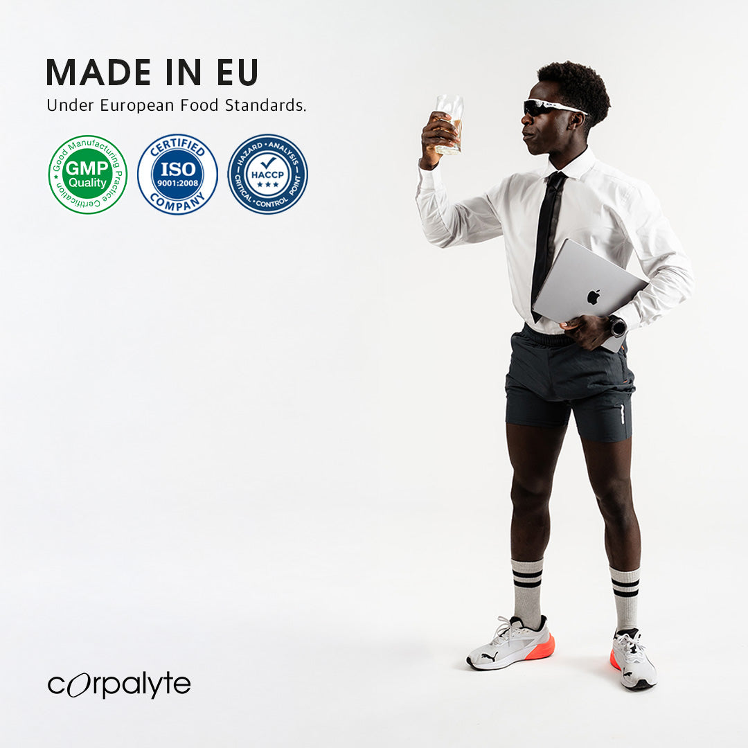 • Corpalyte is a Scandinavian brand produced in the EU under GMP, ISO, and HACCP certifications.